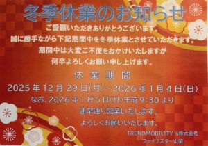 誠に勝手ながら、下記の期間を冬季休暇とさせて